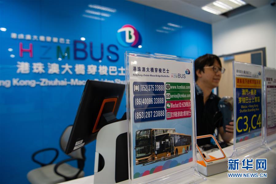 位于港珠澳大橋澳門(mén)邊檢大樓的穿梭巴士售票處(10月19日攝)。 港珠澳大橋?qū)⒂诒驹?4日通車(chē)運(yùn)營(yíng),成為連接香港、澳門(mén)的新通道。記者19日驅(qū)車(chē)前往澳門(mén)口岸實(shí)地采訪,了解口岸內(nèi)部設(shè)置和準(zhǔn)備工作情況。 新華社記者 張金加 攝