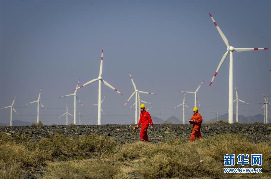 在新疆烏魯木齊達坂城風(fēng)力發(fā)電場,工作人員馬木爾別克(左)和尤志強查看風(fēng)力發(fā)電設(shè)備(2018年9月18日攝)。今年以來,新疆穩(wěn)步推進新能源參與“疆電外送”、擴大與燃煤自備電廠調(diào)峰替代交易等多種電力交易方式,著力破解“綠色電力”上網(wǎng)難題,新能源發(fā)電量同比增加近13個百分點,而棄電量和棄電比實現(xiàn)“雙降”,綠色發(fā)展理念進一步落實。 新疆是我國重要的能源供應(yīng)和儲備基地,風(fēng)能、太陽能儲量豐富。近年來,新疆新能源裝機總量突破2700萬千瓦,規(guī)模和占比均居全國前列。新華社記者 趙戈 攝