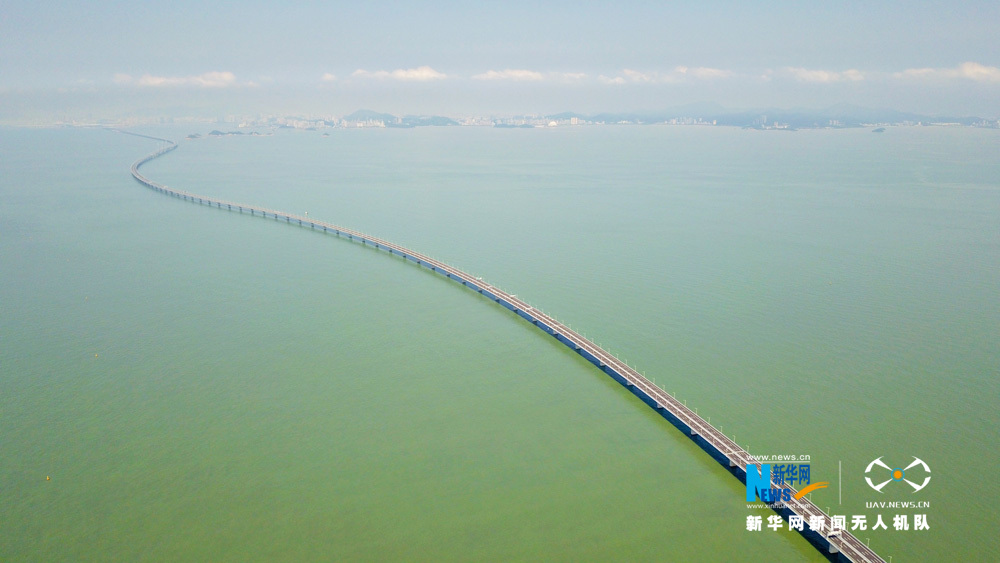 圖為新華網(wǎng)無人機隊航拍港珠澳大橋。新華網(wǎng) 黃璐璐 攝