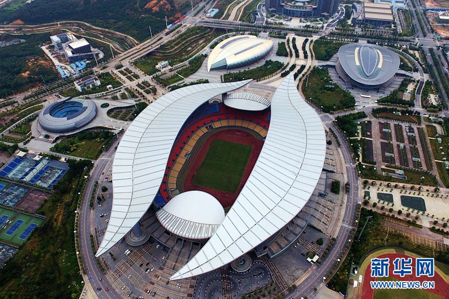 圖為無(wú)人機(jī)航拍的體育中心比賽場(chǎng)館(攝于2018年10月22日)。新華網(wǎng) 章佳禮攝