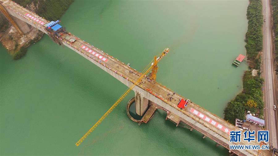 10月23日,在重慶涪陵,施工人員在渝懷鐵路涪秀二線(xiàn)重點(diǎn)工程——烏江右線(xiàn)大橋主跨合龍現(xiàn)場(chǎng)作業(yè)。 當(dāng)日,由中鐵四局承建的渝懷鐵路涪秀二線(xiàn)重點(diǎn)工程——烏江右線(xiàn)大橋主跨成功合龍,標(biāo)志著大橋主體工程全部順利結(jié)束。烏江右線(xiàn)大橋項(xiàng)目全程460.1米,主跨192米,跨越烏江和319國(guó)道。在兩年多的建設(shè)過(guò)程中,施工人員攻克了“不等高墩”“不對(duì)稱(chēng)邊跨”“邊跨入隧”等多個(gè)技術(shù)難題。 新華社記者王全超攝