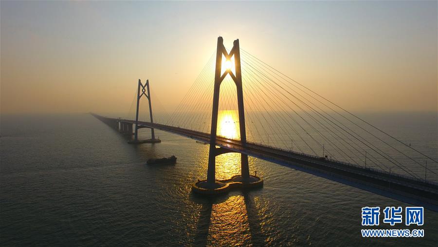 清晨的陽光穿過港珠澳大橋“中國結(jié)”橋塔(2017年12月27日無人機拍攝)。 金秋十月,伶仃洋上海天一色、潮聲陣陣,依傍著這片中國南海水域的城市群迎來深具意義的一天。 10月23日上午,港珠澳大橋開通儀式在廣東珠海舉行,中共中央總書記、國家主席、中央軍委主席習近平出席儀式,宣布大橋正式開通。 碧波之上,一橋飛架香港、澳門、珠海三地,以氣貫長虹的“中國跨度”,飛越滄海百年的歷史風云,展現(xiàn)當代中國的雄健風采。 新華社記者梁旭攝