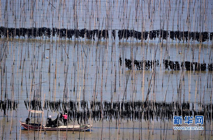近日,福建省莆田市湄洲灣北岸蔣山村的2000多畝種植紫菜進(jìn)入收割旺季,當(dāng)?shù)卮迕駬屖疹^水紫菜。蔣山村現(xiàn)有200多家紫菜種植戶(hù),紫菜種植成為當(dāng)?shù)卮迕裨鍪罩赂坏闹饕a(chǎn)業(yè)。