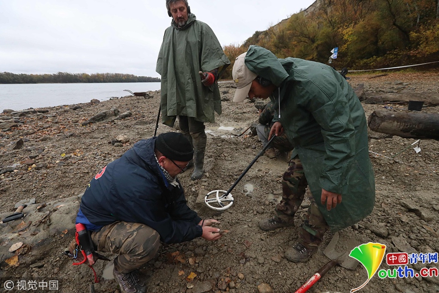 多瑙河水位下降現(xiàn)“寶藏” 考古人員發(fā)掘出大批古錢幣