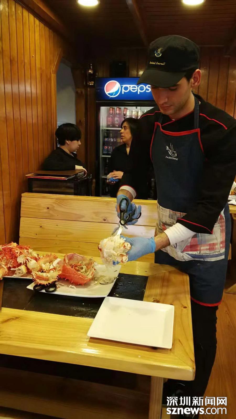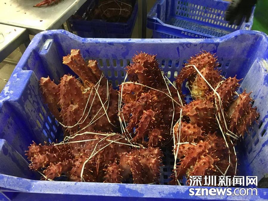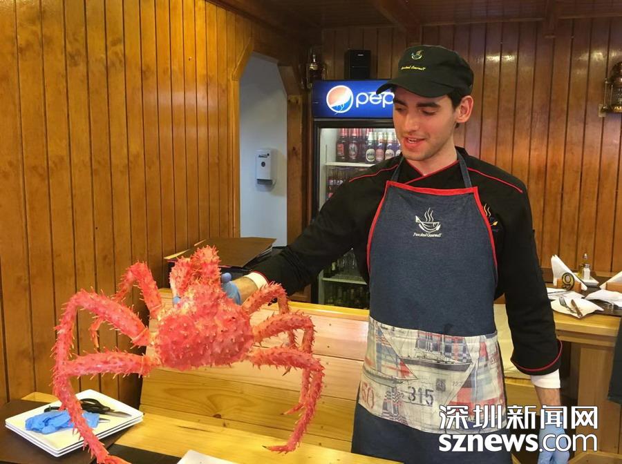 深圳新聞網訊 蜘蛛蟹(又名皇帝蟹)只產于南北兩極冰冷的海洋中,因為八條腿特長,外觀形似蜘蛛,而且觸角也比普通螃蟹多,所以被稱為蜘蛛蟹,大個的重量可達5公斤以上。智利政府規(guī)定,小于1.5公斤的不許捕撈。
