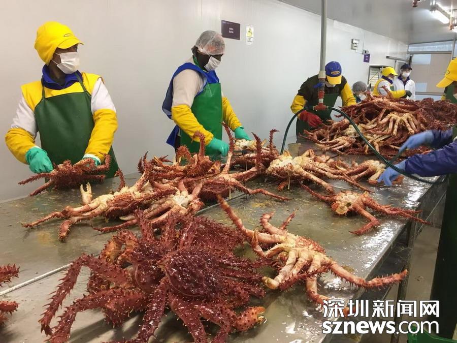 智力蜘蛛蟹加工基地, 產于南極洲海域。 李仁奇 攝