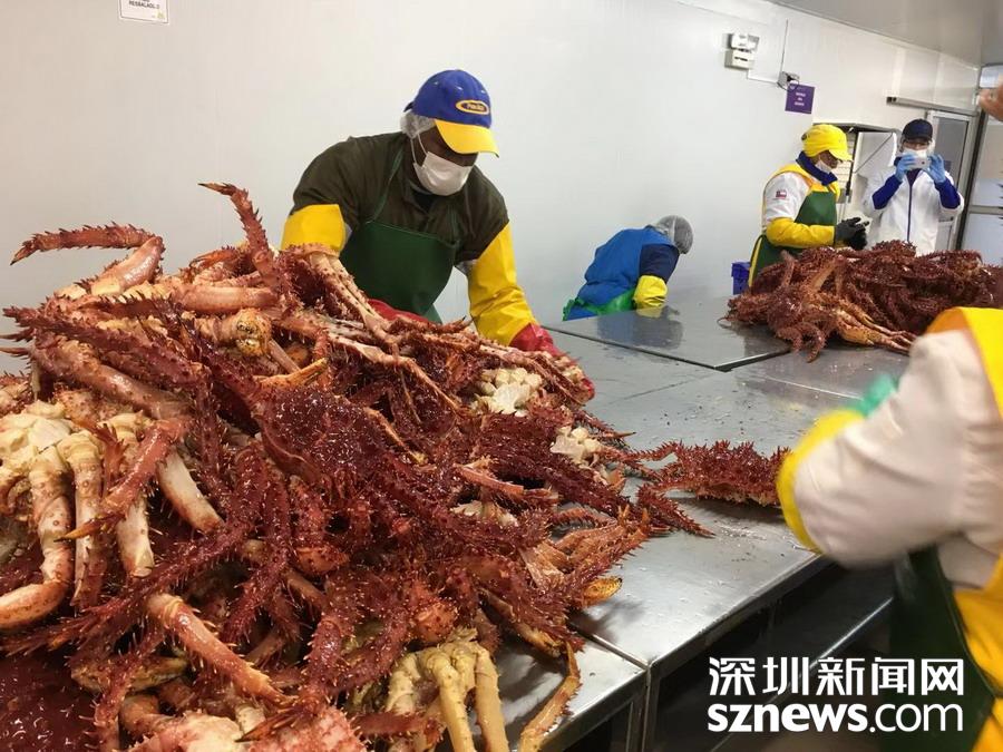 智利蜘蛛蟹加工基地, 產于南極洲海域。 李仁奇 攝