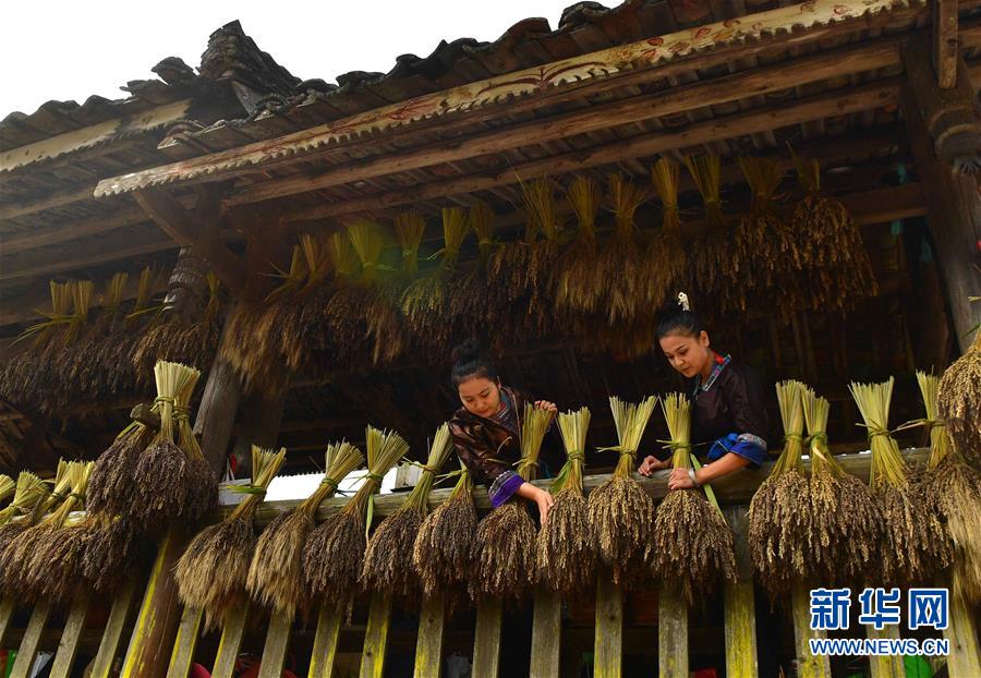 10月30日,在廣西融水苗族自治縣安太鄉(xiāng)元寶村,村民在收獲香糯。 新華社記者 吳建路 攝