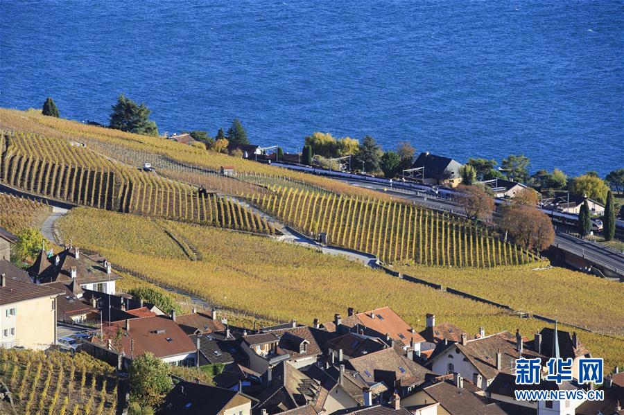 這是10月30日在瑞士西部拉沃地區(qū)拍攝的梯田式葡萄園秋景。 新華社記者 徐金泉 攝
