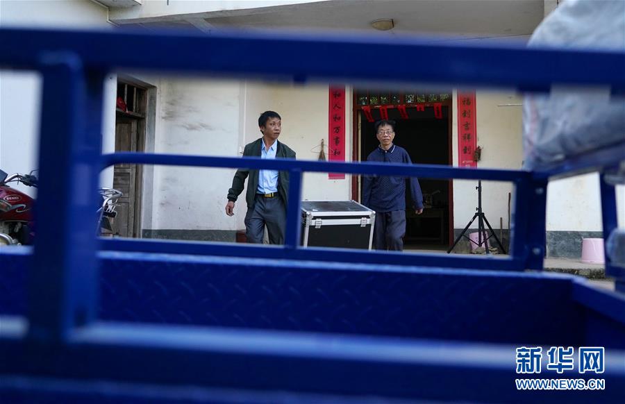 10月30日,曾紀連在寬田鄉(xiāng)山下村為當?shù)匕傩辗庞畴娪?。新華社記者 胡晨歡攝
