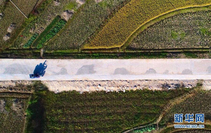 10月30日,曾紀連在寬田鄉(xiāng)山下村布置電影放映需要的幕布。 新華社記者 胡晨歡攝