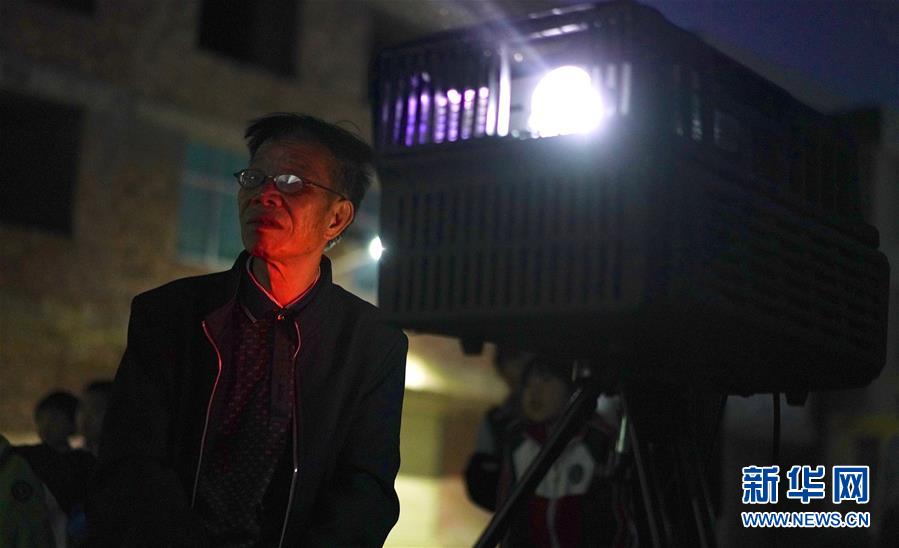 10月30日,寬田鄉(xiāng)山下村的百姓在觀看曾紀連為他們放映的電影。 新華社記者 胡晨歡攝
