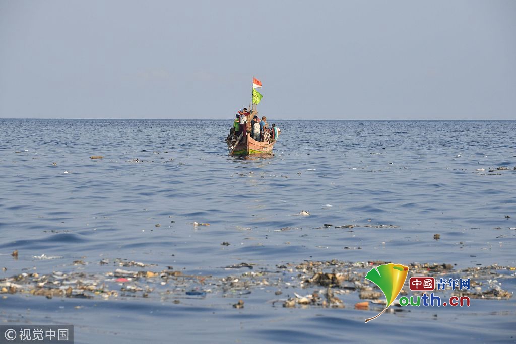 當(dāng)?shù)貢r(shí)間2018年10月29日,印尼西爪哇省,印尼獅航空難墜海水域,遇難者遺物漂浮在海面上。
