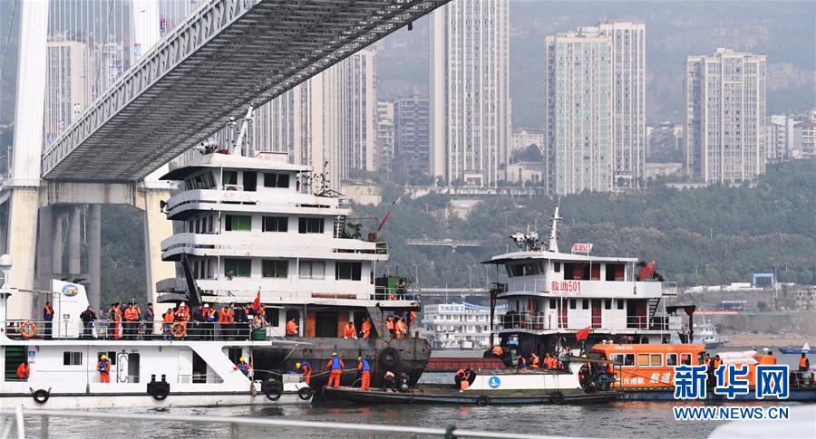 這是10月29日拍攝的重慶萬州公交車墜江事故救援現(xiàn)場。新華社記者 王全超 攝