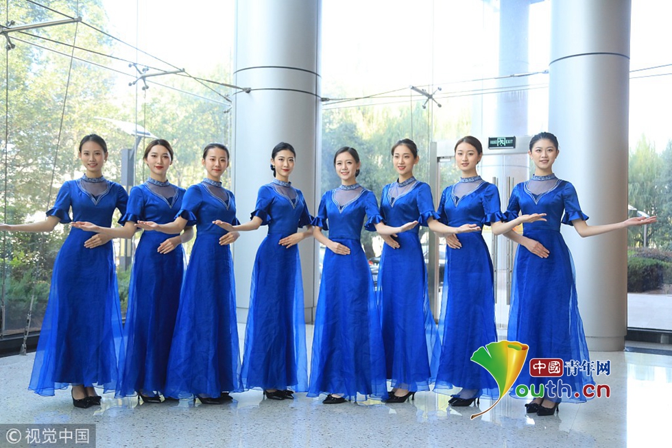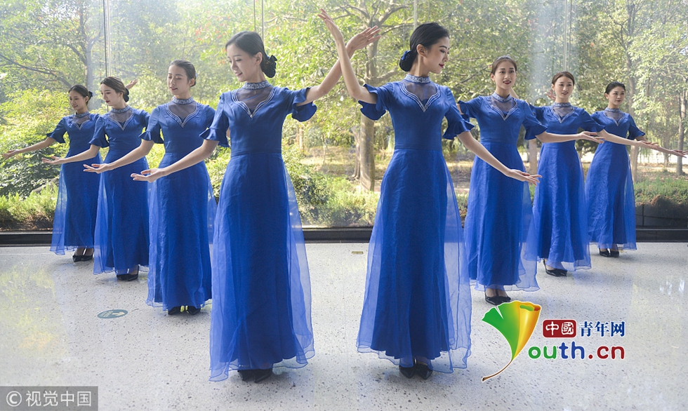 2018年10月15日,杭州,第五屆世界互聯(lián)網(wǎng)大會召開在即,來自浙江傳媒學(xué)院的禮儀志愿者們正在進(jìn)行緊張有序的集中訓(xùn)練。圖片作者:浙江日報 馮賀/視覺中國
