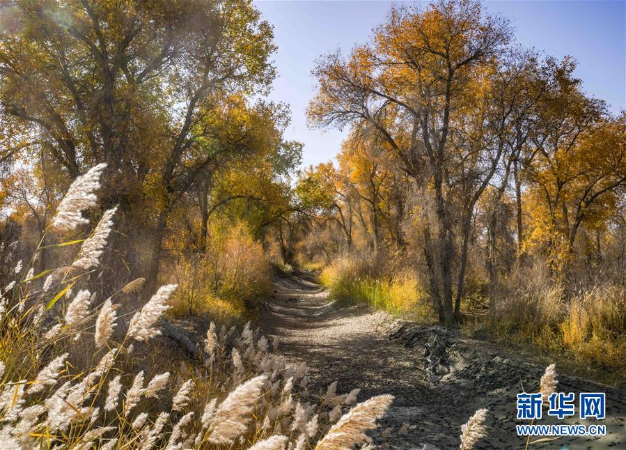 新疆尉犁縣胡楊林深處的一條小路(10月25日攝)。 10月中下旬,靜靜的塔里木河中下游一片金黃。胡楊深處,條條小路蜿蜒綿長(zhǎng)通向遠(yuǎn)方,引人入勝。 塔里木河是中國(guó)最長(zhǎng)的內(nèi)陸河,這一區(qū)域原始胡楊林分布較為集中。隨著塔里木河連續(xù)19次向下游生態(tài)輸水,為胡楊林“解渴”,塔河兩岸生態(tài)得到明顯改善,沙地面積逐年減少。 新華社記者趙戈攝