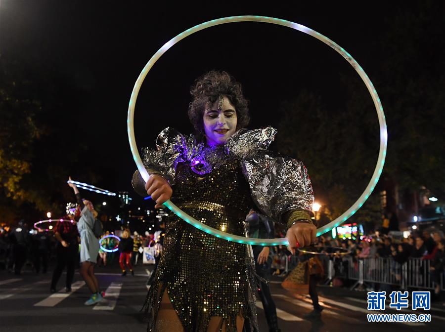 10月31日,在美國紐約曼哈頓,一名男子參加萬圣節(jié)大游行。