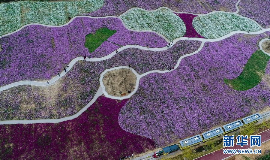 11月2日,游客乘坐觀光小火車觀賞“五彩花?!保o人機(jī)拍攝)。