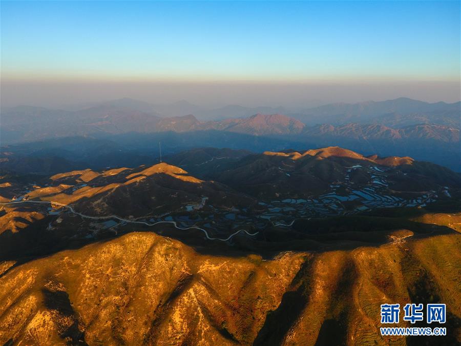 夕陽下的摩天嶺草場(11月2日無人機(jī)拍攝)。金秋時節(jié),廣西融水苗族自治縣桿洞鄉(xiāng)堯告村的摩天嶺草場天高云淡,景色迷人。新華社記者周華攝