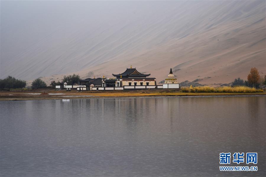 位于沙漠腹地的巴丹吉林廟(10月19日攝)。巴丹吉林沙漠位于內(nèi)蒙古西部阿拉善盟,是中國第三大沙漠,沙丘起伏的曲線陡變成高聳的沙山,碧藍(lán)的湖泊散落在沙海間。新華社記者李仁虎攝