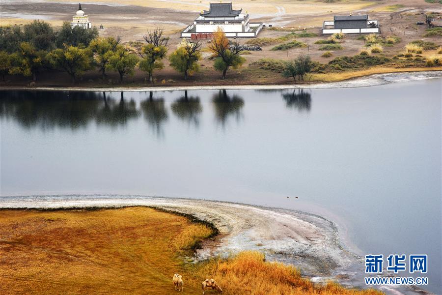 巴丹吉林廟位于名為“廟海子”的湖泊旁(10月19日攝)。巴丹吉林沙漠位于內(nèi)蒙古西部阿拉善盟,是中國第三大沙漠,沙丘起伏的曲線陡變成高聳的沙山,碧藍(lán)的湖泊散落在沙海間。新華社記者李仁虎攝