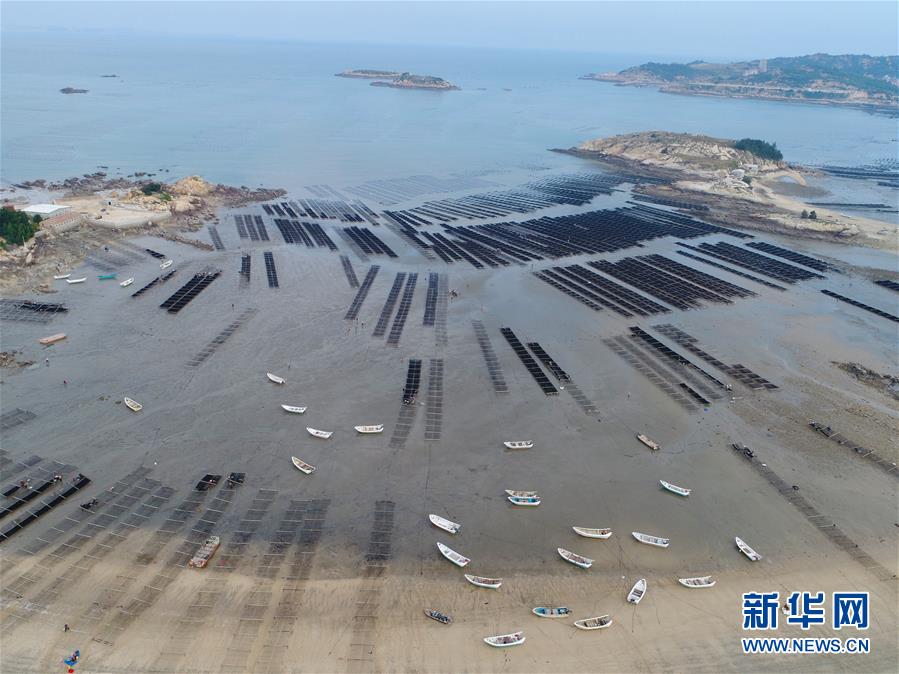福建莆田蔣山村的千畝紫菜種植基地(10月24日無人機拍攝)?! ⌒氯A社記者姜克紅 攝