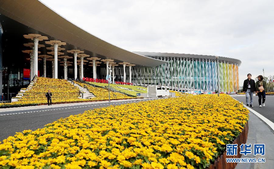 國家會展中心(上海)擺滿鮮花(11月2日攝)。首屆中國國際進口博覽會即將在上海開幕。美麗的上海張開懷抱,迎接八方來客。 新華社記者 方喆 攝