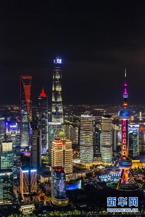 這是11月2日拍攝的上海浦東建筑群夜景。 首屆中國國際進(jìn)口博覽會(huì)即將在上海開幕。美麗的上海張開懷抱,迎接八方來客。 新華社記者 沈伯韓 攝