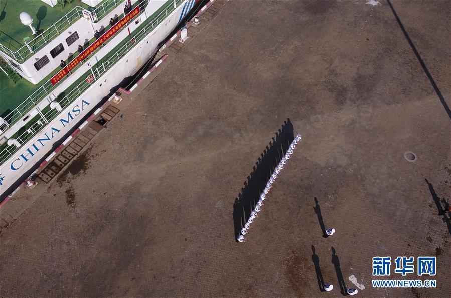11月3日,海事執(zhí)法人員準(zhǔn)備登上“海巡21”輪(無人機(jī)拍攝)。 當(dāng)日,隨著“海巡21”輪緩緩駛離海口海事監(jiān)管基地碼頭,由瓊桂粵海事部門共同開展的瓊州海峽、北部灣及環(huán)海南島水域跨轄區(qū)聯(lián)合巡航執(zhí)法活動(dòng)揭開序幕。 新華社記者楊冠宇攝