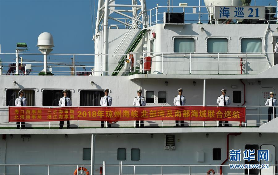 11月3日,海事執(zhí)法人員乘“海巡21”輪出發(fā)。 當(dāng)日,隨著“海巡21”輪緩緩駛離海口海事監(jiān)管基地碼頭,由瓊桂粵海事部門共同開(kāi)展的瓊州海峽、北部灣及環(huán)海南島水域跨轄區(qū)聯(lián)合巡航執(zhí)法活動(dòng)揭開(kāi)序幕。 新華社記者楊冠宇攝