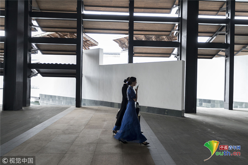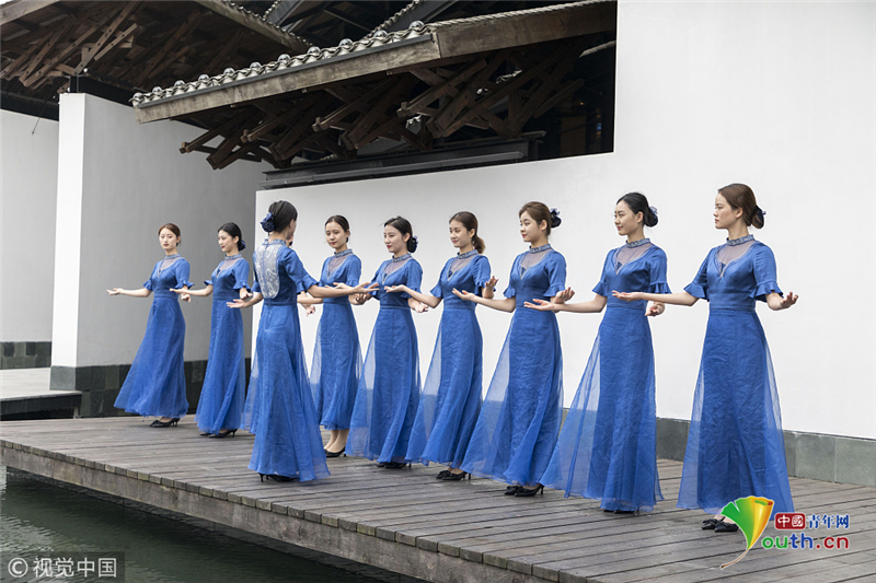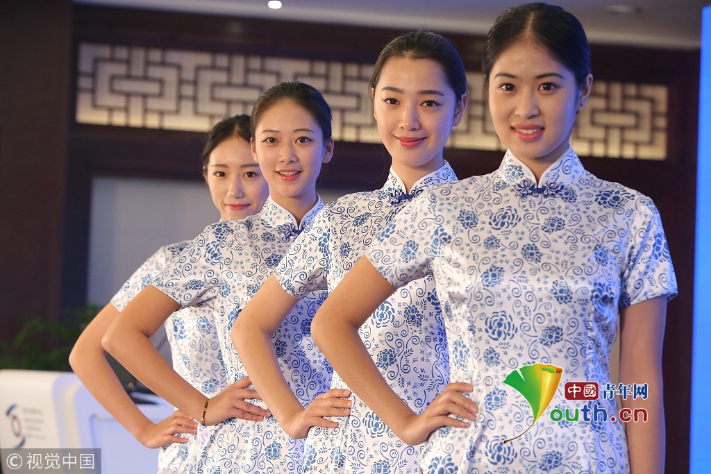 2014年11月17日,世界互聯(lián)網(wǎng)大會(huì)直播演練在浙江烏鎮(zhèn)舉行。來自浙江傳媒學(xué)院的大學(xué)生們,身著一襲青花瓷紋旗袍亮相,顯得分外嫵媚,引人注目。