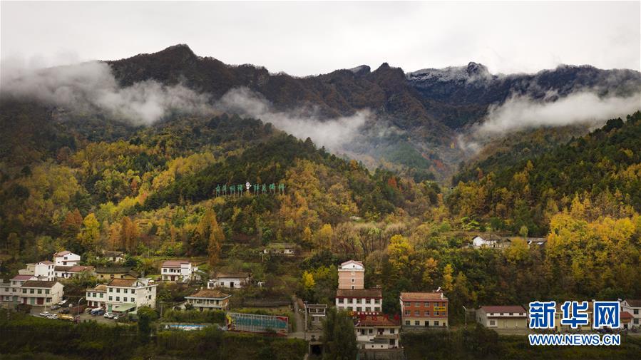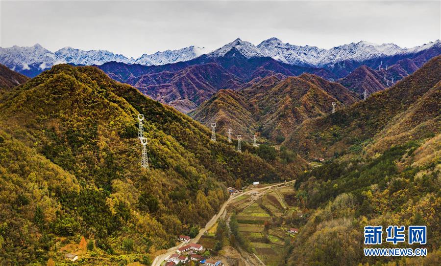 11月5日無(wú)人機(jī)拍攝的陜西省漢中市佛坪縣城旁的秦嶺景色。 新華社記者陶明攝