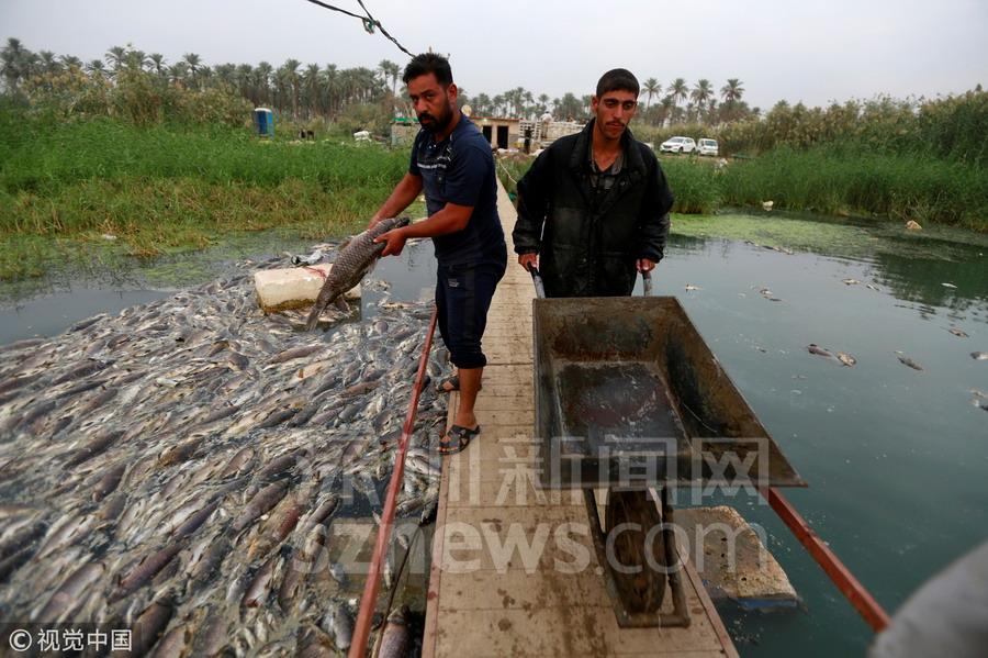 伊拉克河流一夜之間漂浮數(shù)萬(wàn)死魚(yú) 密密麻麻擠滿河道