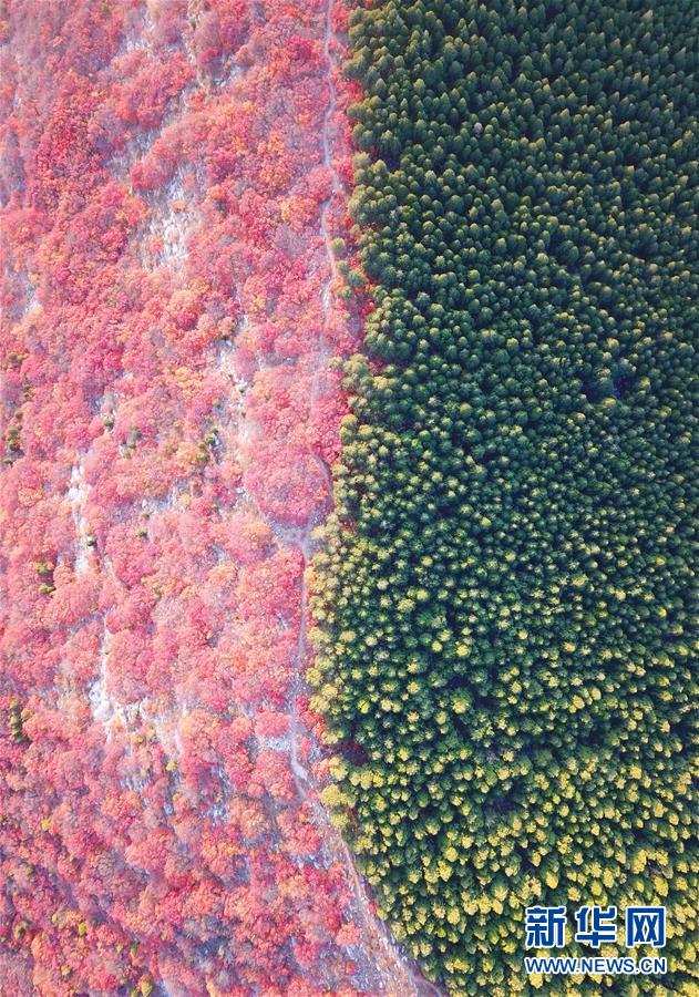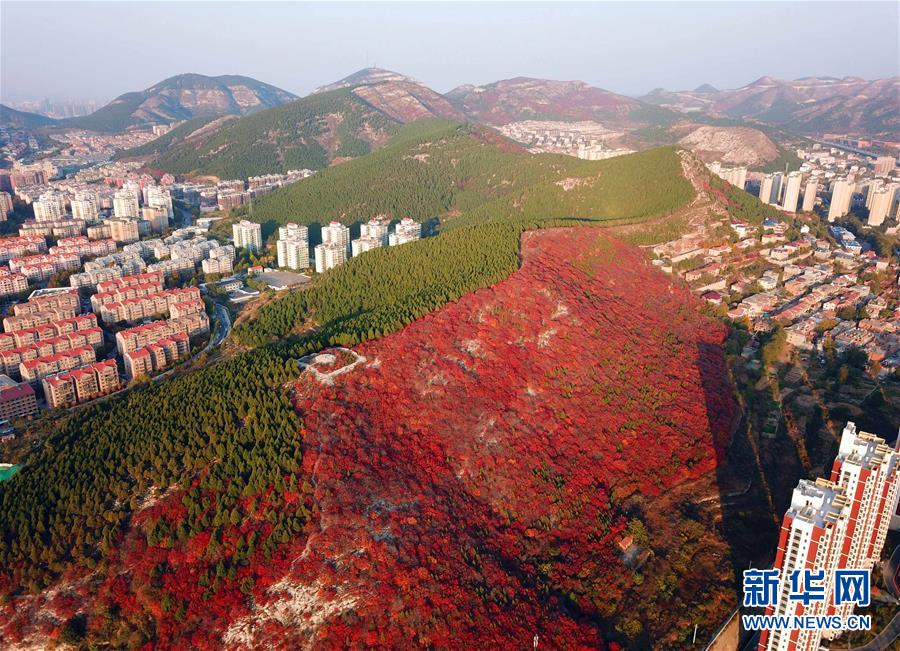 深秋時(shí)節(jié),山東濟(jì)南楔子山山脊兩邊種植的植被形成“一山雙色”景觀(guān),令人稱(chēng)奇。