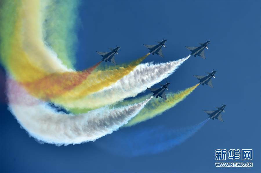 11月6日,中國空軍八一飛行表演隊在航展現(xiàn)場進行飛行表演。當日,第十二屆中國國際航空航天博覽會在珠海開幕。 新華社記者梁旭攝