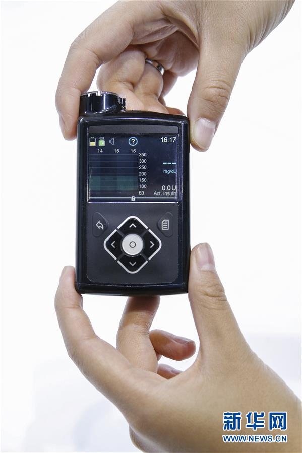 11月6日,美國美敦力公司工作人員展示采用智能算法的混合閉環(huán)胰島素泵。該產(chǎn)品能夠根據(jù)實時動態(tài)血糖曲線調(diào)整基礎胰島素輸注,并且在低血糖事件發(fā)生前停止胰島素輸注,實現(xiàn)接近“人工胰腺”的功能。 新華社記者 張玉薇 攝