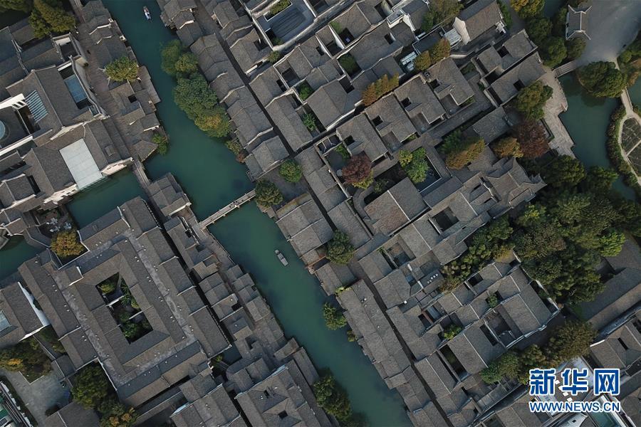 這是10月31日無人機拍攝的烏鎮(zhèn)西柵景區(qū)。 新華社記者黃宗治攝