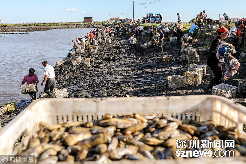 深圳新聞網(wǎng)訊 2018年9月8日,遼寧丹東,早上5點(diǎn),挖蟶人紛紛下到各個池子,要在海水海泥里艱辛勞作10小時,直至下午3點(diǎn)集體上岸,等待買家的運(yùn)輸車隊運(yùn)走他們的勞動成果。9月初,遼寧沿海養(yǎng)殖區(qū)進(jìn)入養(yǎng)殖海鮮的收獲季。在東港,常常出現(xiàn)數(shù)百人乃至上千人集結(jié)在池子里挖蟶子(這里特指縊蟶,即東港當(dāng)?shù)厝怂f的小人仙。下同)的壯觀景象。在養(yǎng)殖海鮮的收獲季,成群的海鷗趁機(jī)“助陣“,人與大自然和諧共處的畫面令人嘆為觀止。