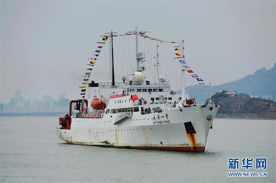 11月7日,“大洋一號(hào)”駛?cè)胛挥谇鄭u市嶗山區(qū)的青島海洋科學(xué)考察基地碼頭。 新華社發(fā)(王海濱 攝)