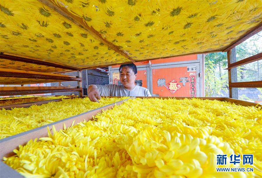 11月7日,河北省魏縣魏城鎮(zhèn)町上村農(nóng)民在分揀準(zhǔn)備烘干的菊花。 新華社記者 朱旭東 攝