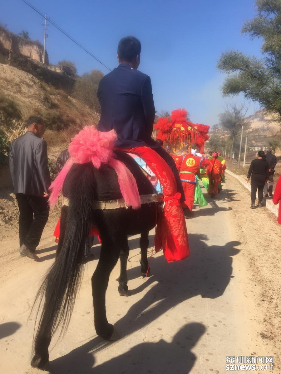 陜北地屬黃土高原,千溝萬壑,修條路對(duì)于我爺爺輩兒的人來說難度挺大的,所以趕集上市,毛驢就是主要的交通工具,到我小時(shí)候,趕集都是騎著驢去的。接親也主要是毛驢了,想想結(jié)婚來個(gè)驢隊(duì)接親其實(shí)也蠻拉風(fēng)的。后來有了自行車、摩托車、小汽車……路由羊腸小道到大土路到柏油馬路……毛驢接親就慢慢的消失了。