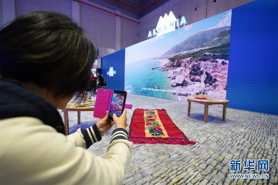 11月7日,在阿爾巴尼亞展區(qū),一名參觀(guān)者拍攝當(dāng)?shù)厣a(chǎn)的地毯。 中國(guó)國(guó)際進(jìn)口博覽會(huì)11月5日在上海開(kāi)幕。國(guó)家貿(mào)易投資綜合展(國(guó)家展)是中國(guó)國(guó)際進(jìn)口博覽會(huì)的重要內(nèi)容,共有82個(gè)國(guó)家、3個(gè)國(guó)際組織設(shè)立71個(gè)展臺(tái)。 新華社記者 王天聰 攝
