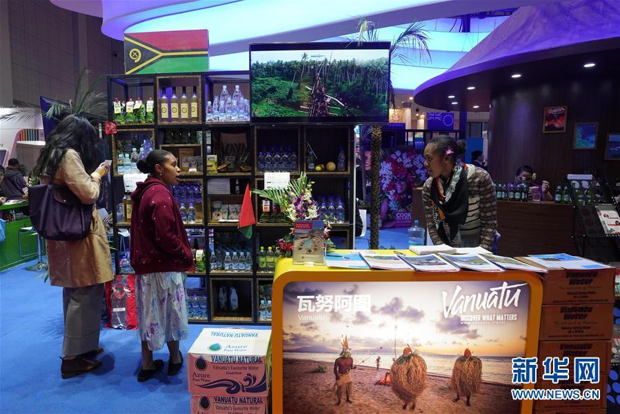 這是11月8日拍攝的太平洋島國展區(qū)瓦努阿圖展臺。 中國國際進口博覽會11月5日在上海開幕。國家貿易投資綜合展(國家展)是中國國際進口博覽會的重要內容,共有82個國家、3個國際組織設立71個展臺。 新華社記者 程麗 攝