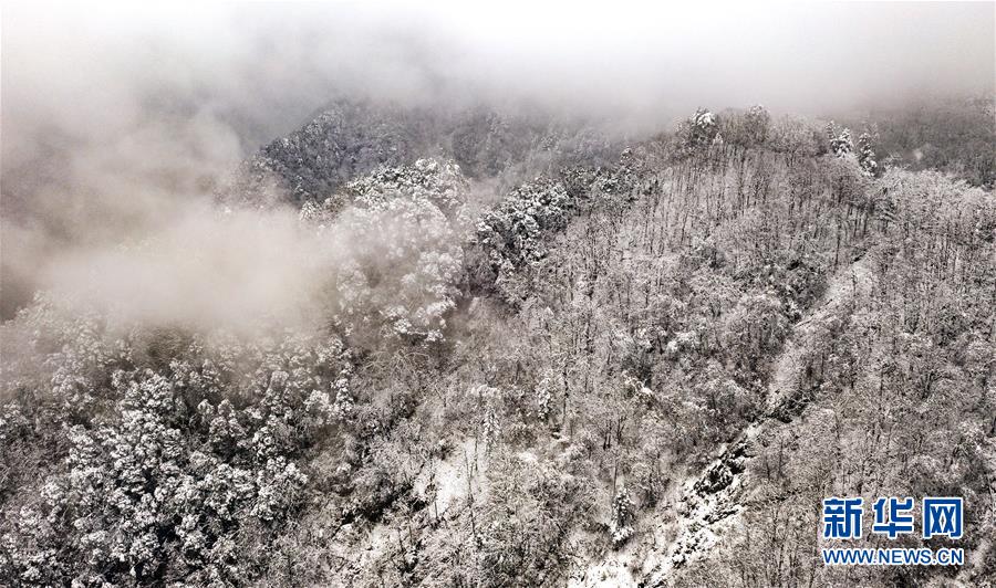 11月5日無(wú)人機(jī)拍攝的陜西省漢中市佛坪縣涼風(fēng)埡景區(qū)雪景。 新華社記者陶明攝