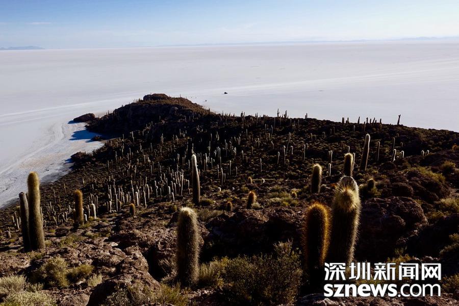 深圳新聞網(wǎng)訊 烏尤尼鹽沼中,有一個孤立的小山頭,猶如瀚海中的小島。島上長滿巨大的仙人柱,據(jù)說有的已經(jīng)生長了上千年。這種形狀各異、耐鹽堿、耐干旱的熱帶植物豐富了鹽沼的風光,構(gòu)成絕無僅有的世界奇觀。 李仁奇 攝