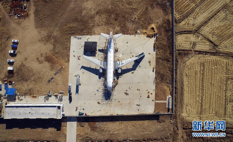這是11月10日在遼寧開(kāi)原老城街道前三臺(tái)子村拍攝的朱躍團(tuán)隊(duì)手工制造的“飛機(jī)”(無(wú)人機(jī)拍攝)。 新華社記者 楊青 攝