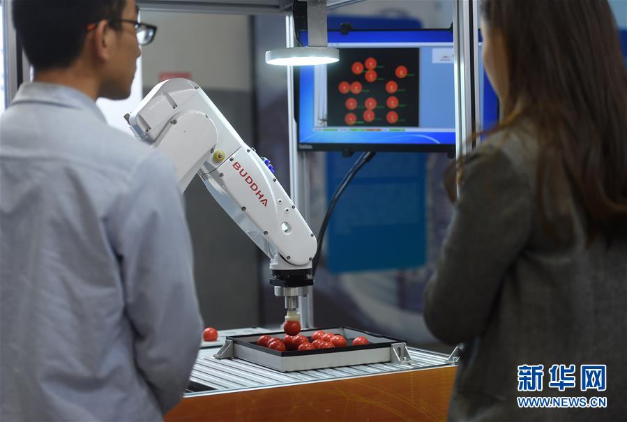 這是展出的一款工業(yè)機(jī)器人(攝于11月10日)。 新華社記者韓傳號攝