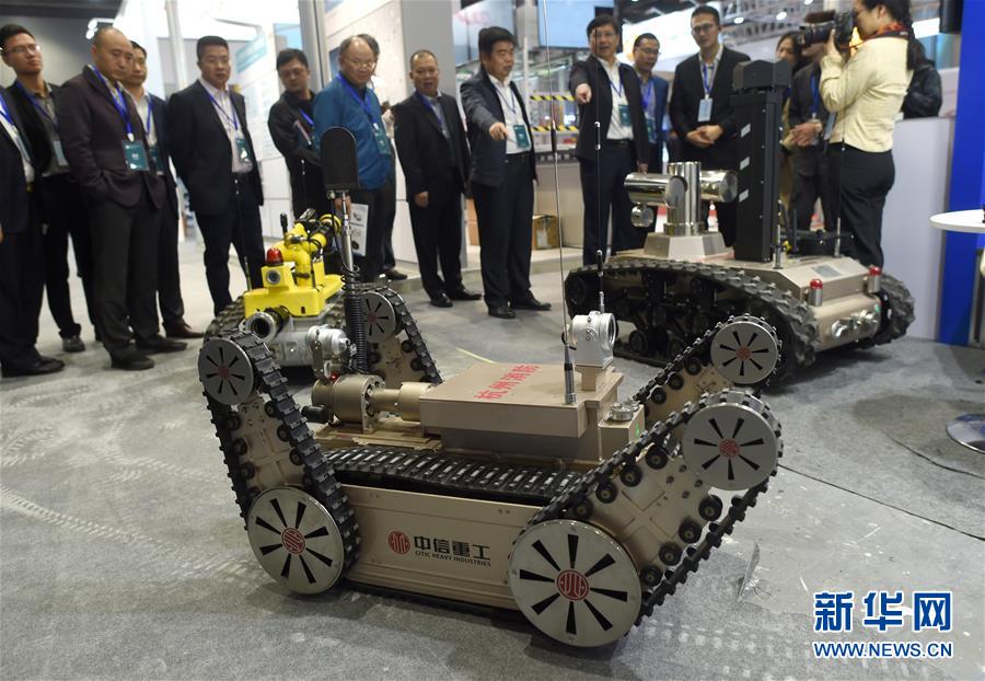 11月10日,與會(huì)嘉賓在觀看展出的消防機(jī)器人。 新華社記者韓傳號攝
