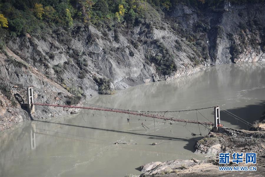 10月20日,西藏雅魯藏布江米林縣堰塞湖自然過流后,通往加拉村的大橋完全浮出江面。 10月19日13時30分,西藏雅魯藏布江米林縣堰塞湖開始自然過流。記者從應急管理部牽頭的聯合工作組獲悉,截至20日7時,雅魯藏布江堰塞湖壩前水位已下降56米,估算留存水量1.6億立方米,堰塞湖洪水威脅得到緩解,防洪安全風險大大減輕,并將繼續(xù)降低。 10月20日,記者乘坐直升機從空中拍攝了雅魯藏布江堰塞湖自然過流的畫面。 新華社記者普布扎西攝