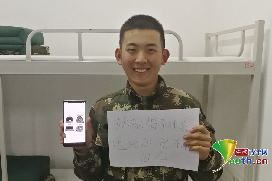 “俺們東北那旮瘩冬天特別冷,給妹妹買個防寒帽和棉手套,這樣上學(xué)就不會冷了。”武警北京總隊執(zhí)勤第二支隊供圖。